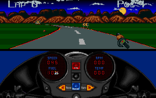 | description | 1000cc Turbo is inspired by Super Hang-On. It is a motorcycle racing game viewed from behind the bike. Road and enduro racing are featured among the 4 bikes offered. Race lengths can be between 1 and 9 laps, and you can race with either sound effects or music. |