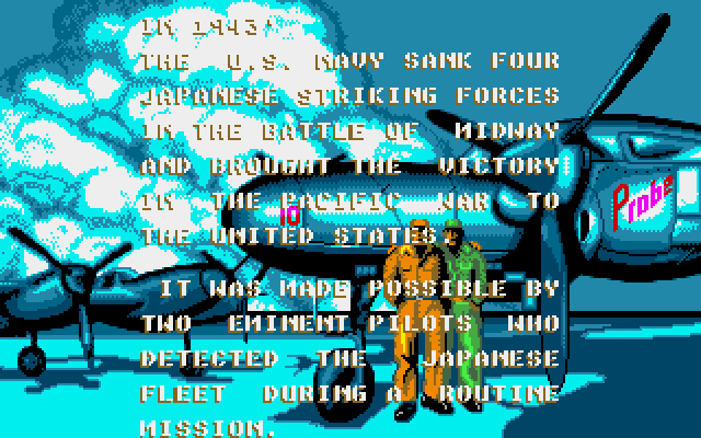 The game is set in the Pacific theater of World War II, off the coast of the Midway Atoll. The goal is to attack the Japanese air fleet that bombed the American aircraft carrier, pursue all Japanese air and sea forces, fly through the 16 stages of play, and make their way to the Japanese battleship Yamato and destroy her. 11 of these stages consist of an air-to-sea battle (with a huge battleship or an aircraft carrier as the stage boss), while 5 stages consist of an all-aerial battle against a squadron of Japanese bombers with a mother bomber at the end.