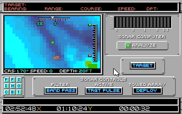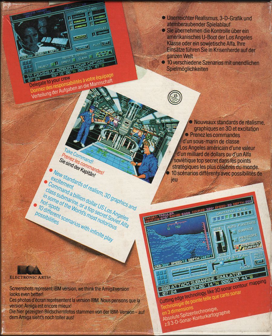 | description | An early submarine game with ten missions which can be played with both American and Soviet attack submarines. The game focuses on realism with several stations the player can use (sonar, weapons, navigation, helm, radio and periscope) but most duties can be delegated to crew members. The graphics are mostly close-up views of the control panels but in some occasions they feature digitized images of surface ships and crew. |