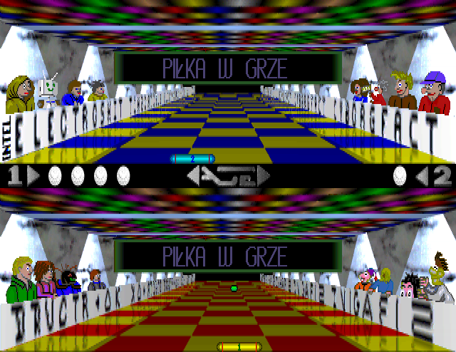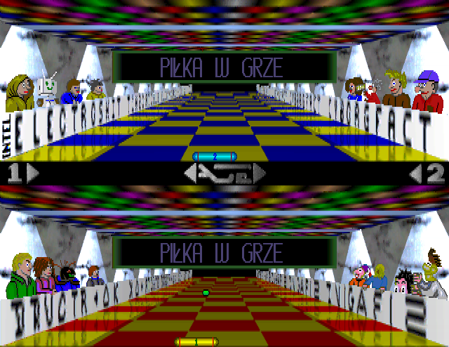 Ace Ball is a split-screen Pong variant, presented in the third person point of view. The player may compete with human or CPU. The objective is to make your opponent miss by proper controlling of the paddle and using left and right walls reflections. The point is gained each time when the ball reaches the bottom line. Six points give victory. The game features four difficulty levels.
