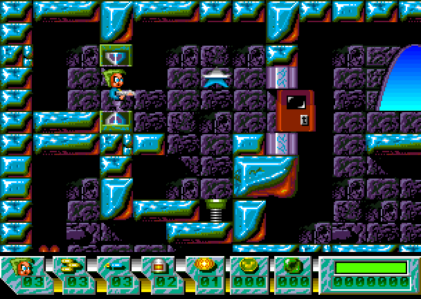 In Action Cat, the player takes the role of a humanoid cat which has to destroy a toothpaste factory. It it full of defensive mechanics and enemies and therefore it is fortunate that the protagonist is armed and can jump. The scrolling levels are shown from the side and have usually maze-like structures. The goal of each level is to find the exit which requires to solve simple puzzles (using switches and finding keys) in order to open new ways to explore. Of course it is also important to stay alive: hits reduce the protagonist's energy bar which eventually results in a life loss - more are earned by gaining enough points. Helpful are the various power-ups which can be collected on the way, e.g. energy refills, better weapons or bombs.