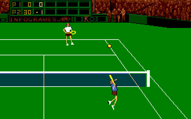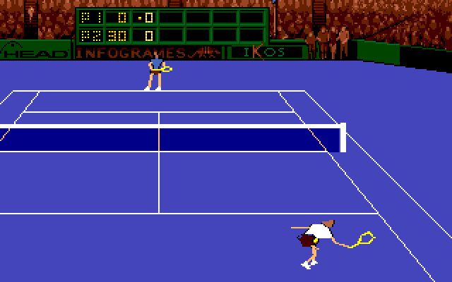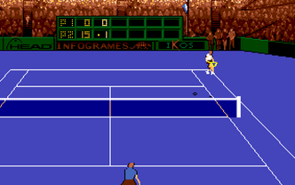Advantage Tennis is a tennis simulation played with 2D characters in a 3D simulated court. The camera zooms and pans in to follow the action. There are training, season and exhibition modes. The season mode allows playing against a variety of competitors and in different courts around the world.