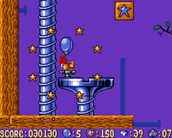 To complete a level, Alfred must find and peck all the balloons. The last balloon will take him to a boss fight. If Alfred dies, he starts as an egg located at the last balloon pecked.
