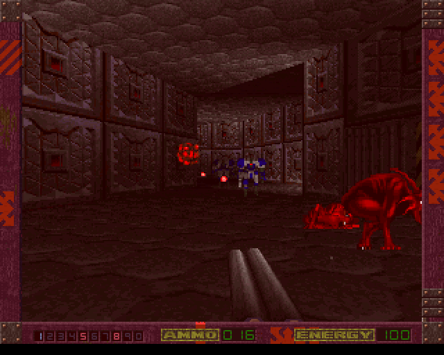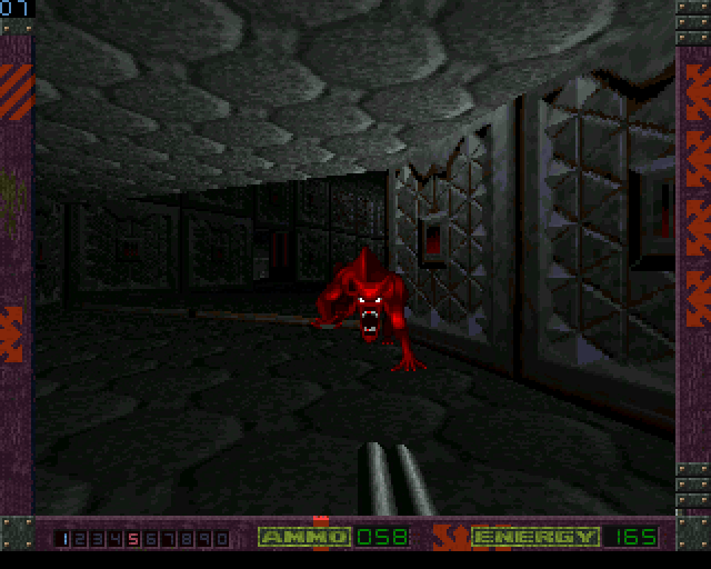 Alien Breed 3D II: The Killing Grounds is a first-person 3D shooter with full-screen graphics. The story is directly connected to the ending of the predecessor: after a hard day's work, the protagonist gets rescued by a space cruiser. But unfortunately shortly after an alien ship crosses their path and kidnaps the crew - now the player has 16 new levels to progress through in one-player mode. The action offers the usual DOOM-inspired gameplay: shooting everything in sight by using the ten weapons with limited ammo and searching for key cards. The enemies are working together and trying to adjust their approach depending on which of the many weapons the player is armed with.