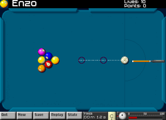 Arcade Pool is an overhead viewed pool game designed to be easy to control. The game includes the most standard games of pool (UK and US 8-ball and the fast-paced 9-ball game), each with customisable rules, computer players of variable difficulties, and two-player options. There's also a Survivor mode, which is similar to the early Pool arcade game, in that you're playing alone and have to clear the table without missing more than three times. Speed Pool involved clearing the table as quickly as you can - two minutes can be considered a good time.