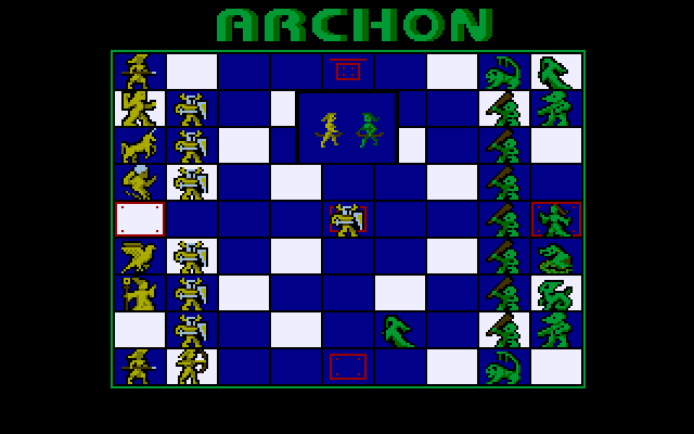 Archon can be played with either one or two players. The NES version, which was released a few years after the other versions, has improved graphics for the real-time combat part. Each type of square has it's own colored background and the unit sprites are larger.