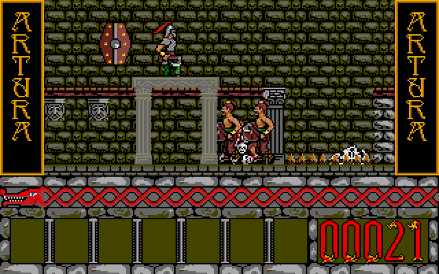 Artura is a side-scrolling platform game. The game semi-utilizes the mythology of King Arthur in that you play as Artura, son of the Pendragon. Your goal is rescue Nimue, apprentice to Merdyn, from your evil half-sister Morgause.