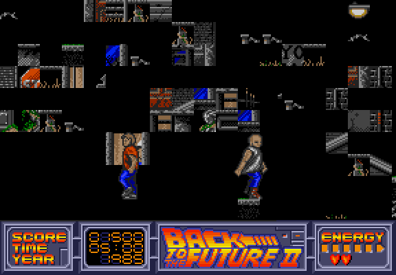 IT'S TIME TO GO BACK... Great Scott! Returning from the year 2015, Doc Emmett Brown has some bad news for Marty Mcfly... His future's in danger unless he can put things right. Guide Marty through five levels in this exciting interpretation of the smash-hit film. Can you assure a safe future for Marty? Or will Biff ensure there's no future at all? — Game Box