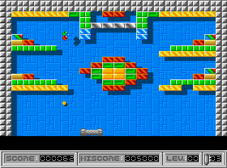 Use your bat to deflect the ball into the coloured bricks. Some bricks hide bonuses, which yield benefits such as an enlarged bat, laser firing ability, or multiplying the number of balls in play. You have 3 lives at the start of the game and you will find they don't last very long, unless your reflexes serve you well.