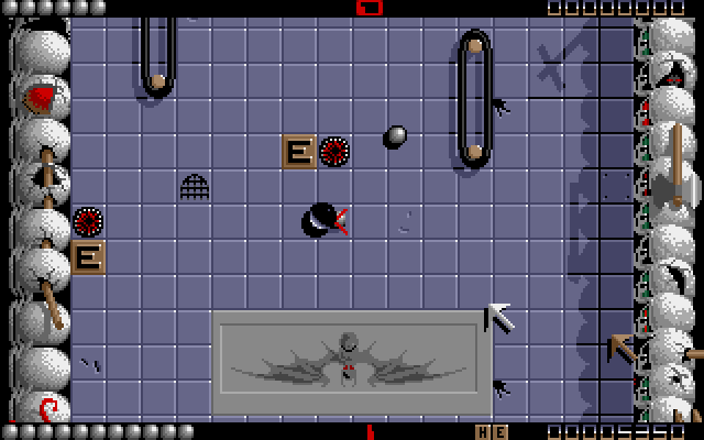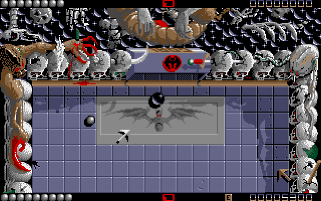 Psygnosis' Ballistix is an arcade game in which you have to manipulate a ball in order to score a goal with your opponent. To do this, you will control an arrow that defines a direction, and pressing the fire key will launch a ball from this arrow in the direction the arrow points to; by launching balls at correct angles, you will manipulate the main ball and control the way it moves. Ballistix also keeps certain physics laws (namely gravity and friction), and will present you with varying obstacles in either one or two player mode.