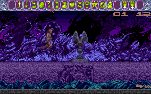Beastlord is an action game with puzzle-solving elements. The Lord of Darkness managed to trick the three guardians of the world (a unicorn, a hawk and a beam of light) into imprisonment and now overruns everything with his orc hordes. The player takes the role of a young man, who is called the Beastlord because he can interact with animals, and has to explore three levels with the goal to free the guardians. The levels are side-scrolling in nature, but there are many branches to map out.