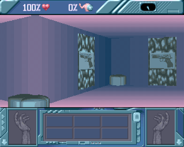 As with all such games you have some enemies to foil and extra weaponry such as rockets, stun bolters and to pick up. Game mechanics are Wolfenstein 3D-influenced, and the graphics smooth and, surprisingly, fast, though they do not vary much except in colour tint. Sound effects consist of the odd gun shot and scream and the music is designed to be atmospherically suited. Four different control systems are offered.