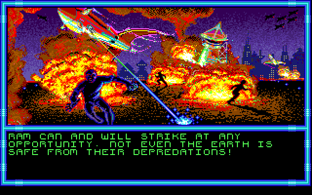 There are several navigation modes in the game. The player can navigate the space ship on a top-down map of the Solar System, choosing planets to land on. Hostile ships may attack the player-controlled ship in this mode. Landing on a planet usually positions the heroes on a local overworld map. Finally, navigation in individual locations (towns and hostile areas) is done in first-person perspective, with pseudo-3D environments. Combat is turn-based and is viewed from an isometric perspective; characters are represented as icons and can be freely moved on the battle field.