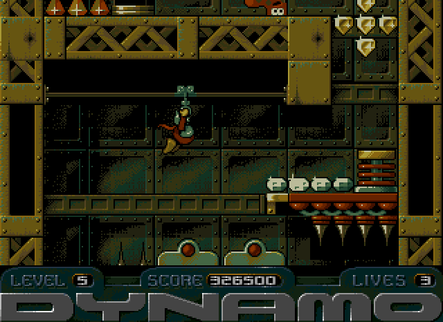 Gameplay is platform-based, with 12 (6 in Amiga version) vertically-scrolling levels, each containing around 50 diamonds - the more of these you can collect, the higher your score. Some will require advance planning to reach, while you will often be dependent on booster pads to reach the higher sections of a level.