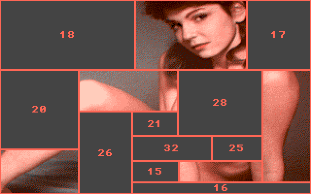 An adult puzzle game. Players compete against the computer with the goal of occupying the squares covering a digitized picture of a centerfold. When you acquire a square, it disappears, revealing more of the picture. Includes a large variety of pictures, with numerous difficulty levels.