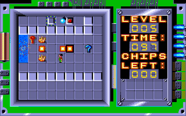 Chip's Challenge is a top-down tile-based puzzle video game created in 1989 by Chuck Sommerville originally for the hand-held Atari Lynx. Chip's Challenge was then later ported to multiple formats including the Amiga, Commodore 64, ZX Spectrum, DOS, and Windows, included in the Microsoft Entertainment Pack and Best of Microsoft Entertainment Pack (the last of which was written by Tony Krueger in 1991) . Microsoft licensed Chip's Challenge from Epyx to write a DOS and Windows version of the game; while porting the game, the logic was slightly changed from the original version. It has also been converted to the TI-84+ calculator and the TI-89 Titanium.