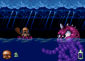 The story in this Chuck Rock game takes up a little while after the end of the first game. As you may remember, Chuck Rock had to rescue his girl, Ophelia from the bad dude Gary Gritter. Well, he was successful in his efforts, and now Chuck and Ophelia are married. Eventually, they have a son, named Junior. Chuck works in a factory, where he develops great skill at carving automobiles out of stone. A rival manufacturer becomes jealous of Chuck's abilities and kidnaps him. Now it is up to Junior to rescue his dad!