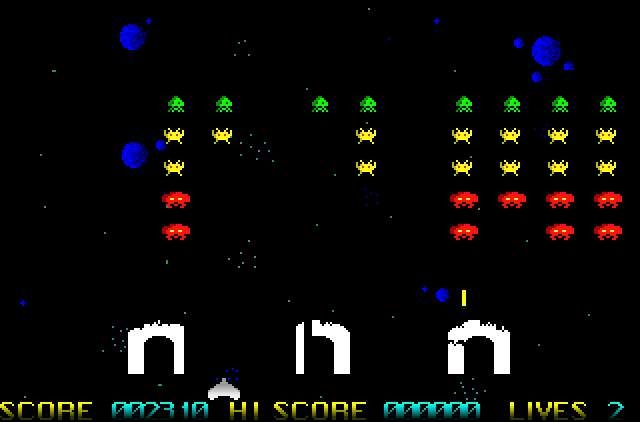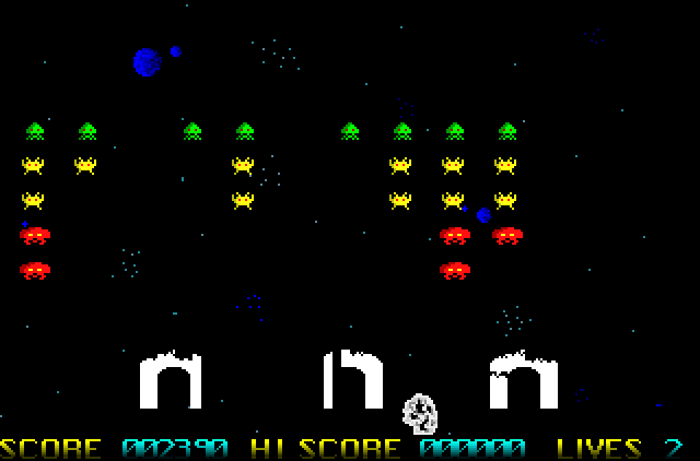 There is nothing new we could tell you about Space Invaders, so, unfortunately for Supernova, that only leaves the conclusion. The Invaders in this version move excruciatingly slowly, even when there is only one left on screen, the collision detection is dodgy (shoot through your barrier and you take off either a whole bullet’s width, or absolutely nothing no matter how many times you fire) and the sound is best left turned off.