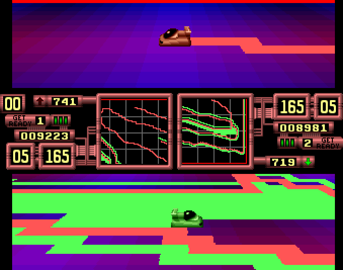 It's obviously very easy to ruin a simple and addictive game by over complicating matters, and that's exactly what Starbyte have done. OK, so it's technically impressive, and it looks exciting, but the simplistic gameplay doesn't lend itself to such an over-polished production. The computer opponent is the final nail in the coffin. He's not offensively intelligent, so he rarely attempts top trap you, but once you've got him in a corner, he prcisely covers every single square available to him which takes an age. It's immposible for a human player to act with such accuracy at ridiculous speeds, so the computer player invariably wins.