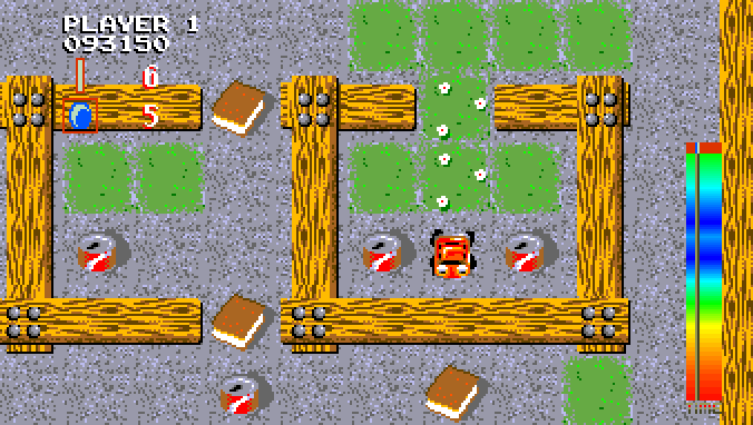 Crazy Cones is a very straightforward little game where you have to collect cones, while avoiding nasties or killing them using mines. There are also obstacles which have to be destroyed using missiles. Fast-paced but a little to simple to be a very good game in my opinion.