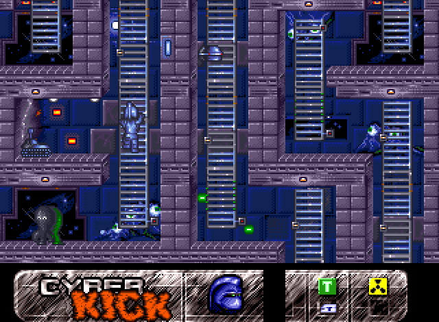 Cyber Kick is a science fiction platform game. The action takes place in the space base of renegades on Mars. John Malkovitch goal is to collect all the radioactive containers and put them in the recycling stations. The player will encounter countless number of traps, such as electric barriers, sharp blades or vices and hostile opponents, such as alien creatures, drones, mechs, tanks and others. The only weapon of the player is a powerful cyber kick. In base teleporters can be activated only after finding the right access card.