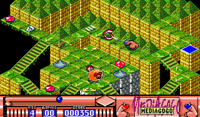 Your task is being done harder by various type of monsters that keep running after you and often decrease your energy level. But you may shoot them with spits of sperm. In one player mode the playfield is fullscreen and in two players mode each player gets to play in a tiny portion of window. Each of 15 levels may be accessed via password and after certain levels the picture of your girl will be shown. High Scores table shows the list of most successful players.