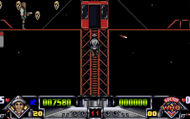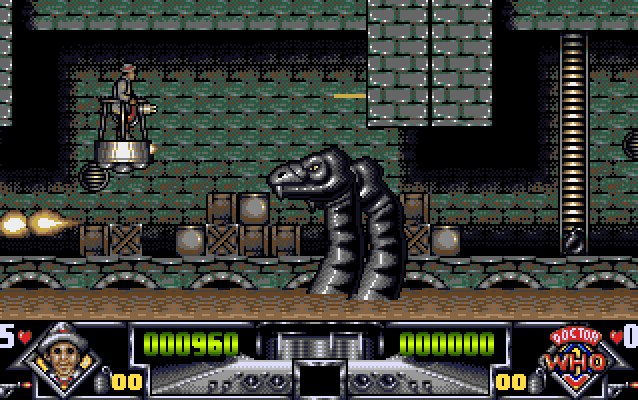 In this game you play the role of the Doctor from the BBC science fiction program Doctor Who. The story sees you trying to stop the Daleks from invading earth with help from your companions. The gameplay starts with you flying along the sewers of London on a hover platform blasting monsters with your laser.