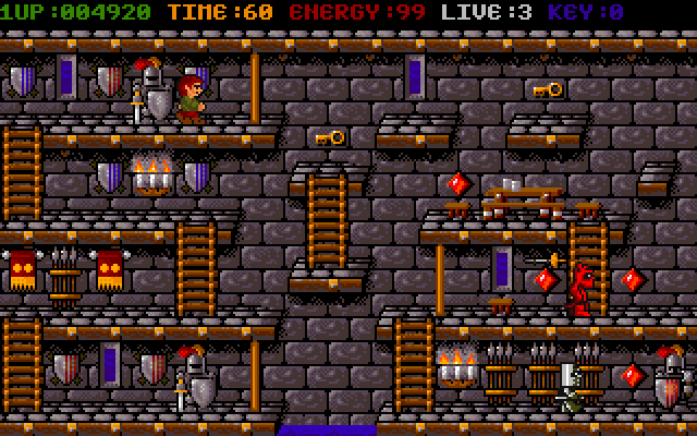 | __long_description | Danger Castle is 2D single screen platform game. The player controls an elf-like boy and must collect all crystals on the screen to complete levels and go further. Each level is full of various enemies, locked doors and various traps. To unlock doors player must pick up the key. He must use ladders to climb up and down - the fall of most platforms is fatal. He has 3 lives and 3 continues. |