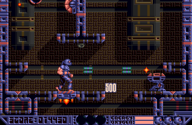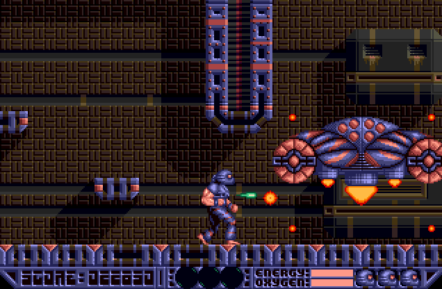 An underwater nuclear research base has been invaded by a hostile craft. Captain Dawnrazer is sent in to wipe up the aliens and other beings, and that's where you come in. Deep Core is a dark platform adventure with similarities to Gods. There are nine main levels, each of which is split into sub-levels and also has bonus sections leading off from it. Each of the 6 weapons which are on offer can be boosted in power.