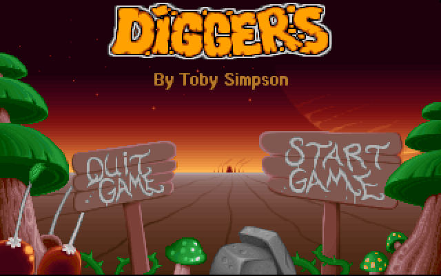 Diggers is a Lemmings-style puzzle game where you command five alien miners (from a choice of four clans) and various gadgets to dig for treasure. The game is divided in excavation areas. Each area has a set amount of money you must raise before moving into the next one. To do so, you must sell your collected treasure to the bank.