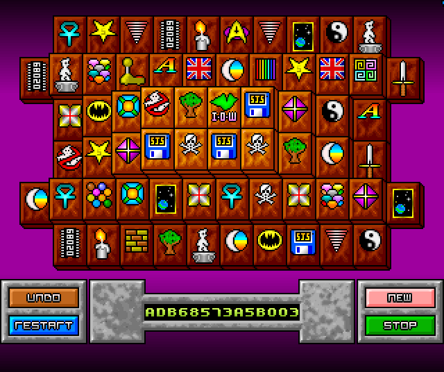 A variant on Shanghai, the ancient Chinese tile game, released when the official Amiga version was long unavailable.