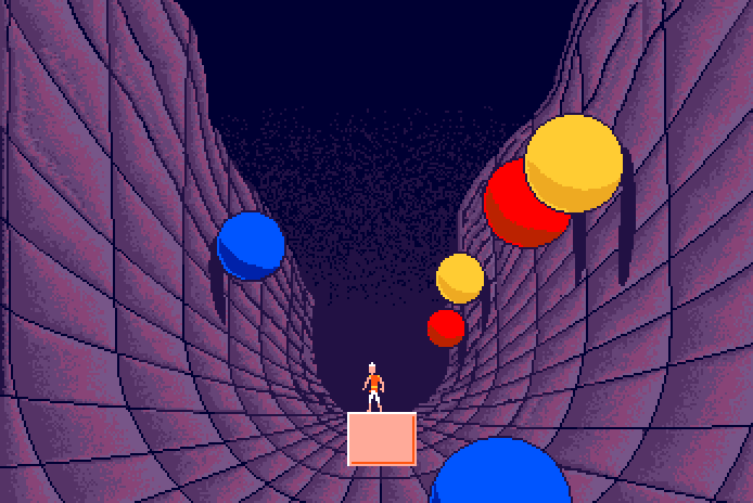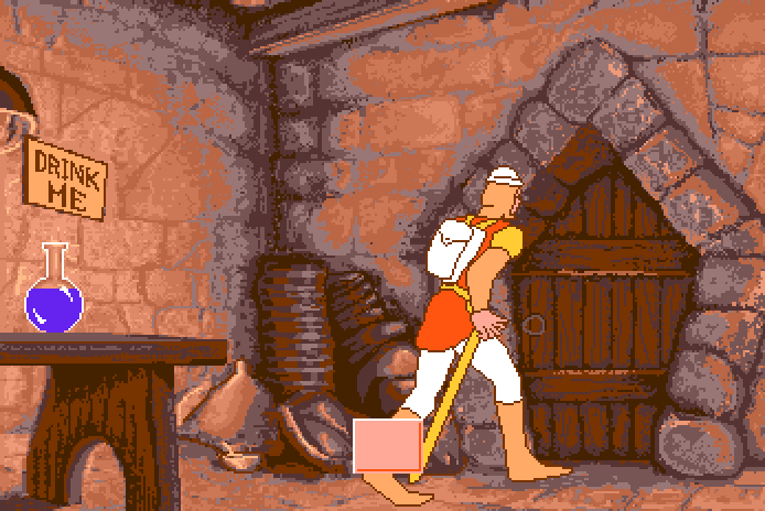 Dirk the Daring is controlled by the player, who views Dirk's actions on the screen from third-person. The game is reactive and players must press the right controller direction or action button at the right time to have Dirk avoid traps, defeat monsters and otherwise stay alive.