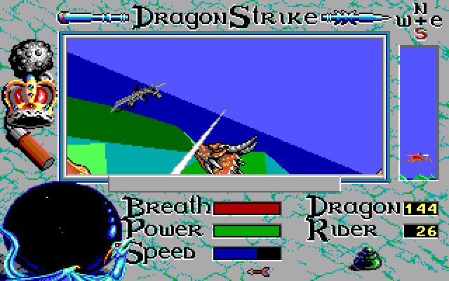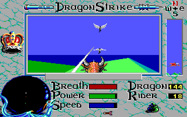 | __long_description | DragonStrike is a flight simulator in a high fantasy setting. The player character is a knight who flies on the back of a metallic dragon equipped with a lance and various magic items (among other things a magic orb that acts as a radar in the game). The player's dragon can use its recharging magical breath to attack and can also attack with its claws or bite if the dragon passes closely above enemies (likewise, should the dragon pass closely beneath enemies, the player character might attack with his sword). Opponents in the game include evil dragons with and without riders and other flying monsters such as manticores, wyverns, sivak draconians and beholderkin known as gas spores. Flying too close to the ground is another hazard for the player as enemy archers are present in some areas.