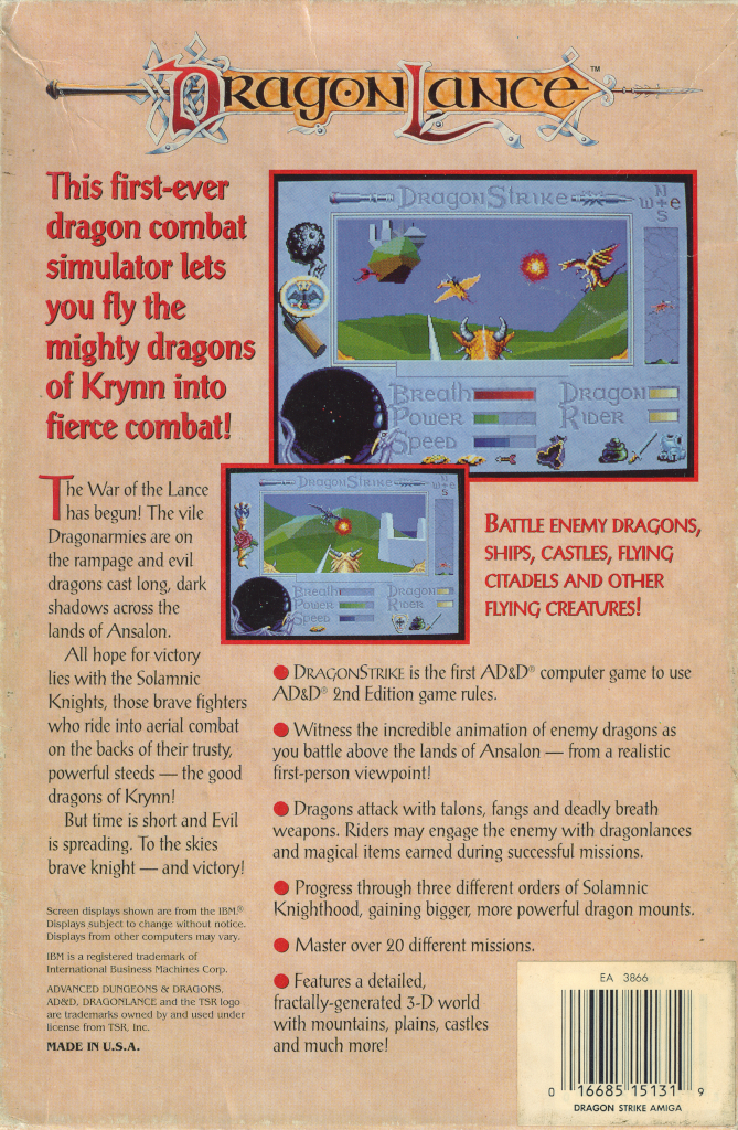 | description | The War of the Lance has begun! The vile Dragonarmies are on the rampage and evil dragons cast long, dark shadows across the lands of Ansalon. All hope for victory lies with the Solamnic Knights, those brave fighters who ride into aerial combat on the backs of their trusty, powerful steeds -- the good dragons of Krynn! But time is short and Evil is spreading. To the skies brave knight -- and victory! |