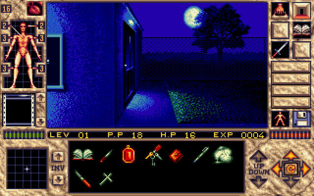 Elvira II: The Jaws of Cerberus is an adventure/RPG first-person game. You begin by choosing one of the four classes for your character (which determines your starting attributes, such as Strength, Intelligence etc.).