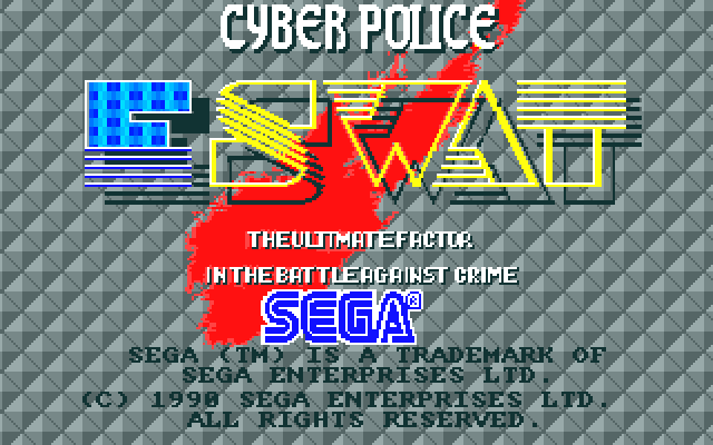 ESWAT: Cyber Police is a horizontal-scrolling beat 'em up where you have to make your way from left to right and defeat a mastermind. There are 15 stages to complete, and have you patrolling through Liberty streets, car yards, stadiums, restaurants, the CBD, construction sites, and boat docks. While you're out on patrol, you can pick up ammunition, and the amount you get varies. For example, on some levels, ammo may be worth 10 bullets, while in others, you may get 60 bullets. Once you have obtained the cyber-suit, you wear it for the duration of the game.