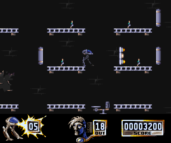 In Extrial your mission is to collect the soldiers that are running around on the platforms by reaching them and crouching down so they can hop into your robotic machine whilst avoiding / shooting the baddies. There are 3 levels to get through, each with it's own boss which obviously you must defeat to be able to progress to the next level. Incredibly hard game but pretty cool too.
