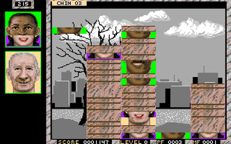 Rotating falling blocks in a set way is the aim in this follow-up to Tetris and Welltris, but the concept here is very different. The falling shapes represent parts of people's faces, which must be arranged and rotated to form complete human-looking faces, ideally matching that of a famous person or other face. You can use a paint package to draw a face to import, which each of the 60 faces has appropriate background music. There are 10 difficulty levels and an optional head-to-head mode.
