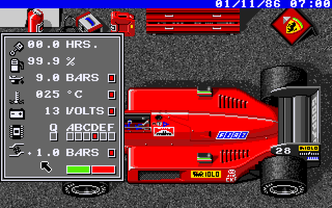 With the full support of Scuderia Ferrari, Formula One racing was recreated in detail in this simulation, with the top drivers and teams of 1986 to compete against for the most successful F1 team of all. You job does not start at the racetrack; perfecting the car at the Maranello factory, in the wind tunnel to sort aerodynamics, and at the test track of Fiorano, is all required to get the most competitive car you can.