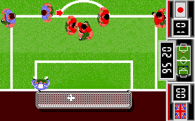 Football coin-op conversion. Large sprites and small playing field. Passing is not important as the main emphasis is on winning the ball and running with it. Very difficult to keep hold of the ball when you are in possession as the opposition defenders have a lot more pace than the player with the ball so games tend to be a melee in the middle of the field of players all frantically tackling each other for possession.