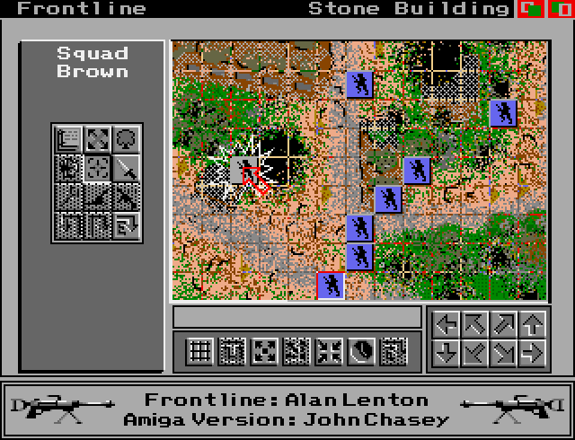 The player commands 10-man infantry squads, to which assigns leaders (their leadership skill having a direct influence on squad's morale) and support weapons (like heavy machine guns – affecting not only firepower, but also movement rate), artillery pieces with crews are also available. Walls and shell holes may provide cover on the varied battlefields. The game features an icon-driven menu-based interface. |