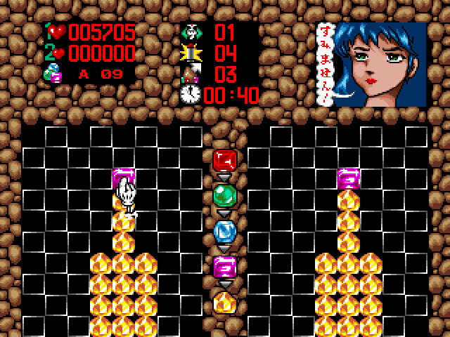 Like so many other puzzle games of the time, this game involves tiles of different colours, which must be manipulated to clear a succession of increasingly-difficult levels.