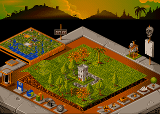 Ultimate Domain is a game of kingdom building set in the mythical land of Genesia. The game has an isometric view point, and allows you to watch as your people work, play, and suffer, in real time. You must build up your kingdoms infrastructure, grow food, mine minerals, produce building materials, conduct research, and create armies. You may engage in diplomacy with your neighbors, but eventually conquest will become essential for expansion. There is an underlying sub-plot that must be achieved as well, there are nine magical jewels scattered around the land, and you must retrieve at least seven of them to be victorious.