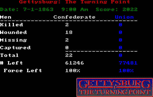 Gettysburg: The Turning Point is a grand tactical simulation of the most famous, well known and arguably the most decisive battle of the Civil War fought at the little town of Gettysburg, Pennsylvania from July 1 to July 3, 1863.