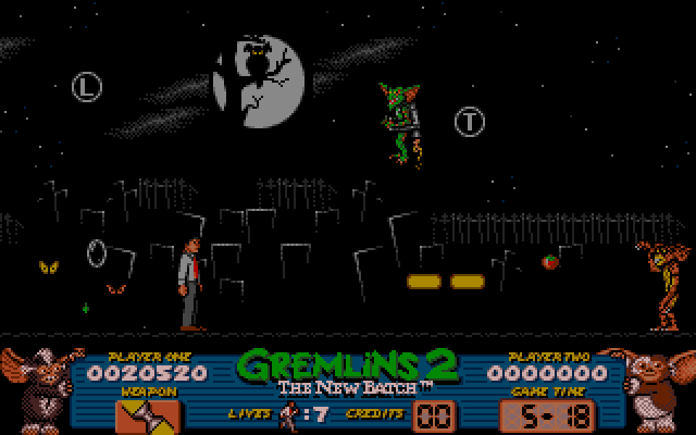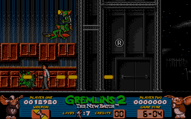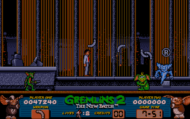 As Billy, you set off to rescue Gizmo the Gremlin from Clamp Tower skyscraper, where Dr. Catheter plans to viciously experiment with him. Unfortunately, Catheter gets word of your plans, and mixes up a whole new batch of vicious gremlins. As a result, your mission is now one of destruction and avoidance.
