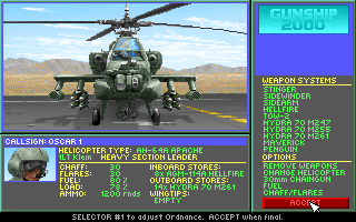 Take the Apache, the new Longbow Apache, The Blackhawk, Comanche Scout, Comanche Gunship, or the MD-500 Defender on campaigns or missions. The updated graphics engine provides much more detailed terrain variation, with true valleys/hills and even train tunnels that you can fly through. When you are promoted to a sufficient rank you can take along multiple helicopters to accomplish your objectives. The dynamic campaign generates new missions based on multiple maps. Attack, defend, sweep, scout, rescue, drop... Lots of missions to keep you busy. The crew learns and grows in experience as they continue to survive and succeed. A full mission recorder allows you to view every member of your team as they fight or die. Plenty of weapons are available for your side from the latest Hellfire missiles and Sidearm anti-radar missiles to the old-fashioned chain gun and gun pods are available for your use. The enemy can be well-armed as well, from deadly 2S6 gun/missile combo to old-fashion ZSU-23, even the occasional MiGs.