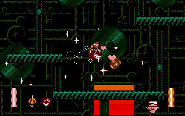Harlequin grew up living in Chimerica - paradise for any inquisitive child with its vast acres of surprise. When he left it to find a more challenging and mature world, it gradually withered away, and its many inhabiting creatures turned nasty. Harlequin must return to neutralise them. He does this by firing hearts of love at them, as contact with any of them is fatal. The gameplay is platform-based, with lots of vertical ascents to be made, and features lots of bonuses and hidden sections.