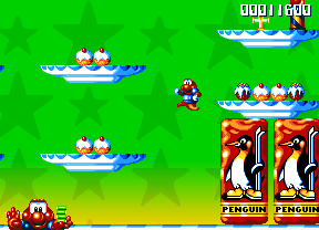 The gameplay takes place across worlds themed around particular types of toys, such as sporting goods, candy and aircraft. The levels scroll sideways, although a small amount of vertical movement is included. On each level Pond must collect 2 penguins and reach the exit, although there are usually multiple exits and lots of secret areas to explore. After completing each pair of two worlds (each of which has three sub levels), a boss must be faced.