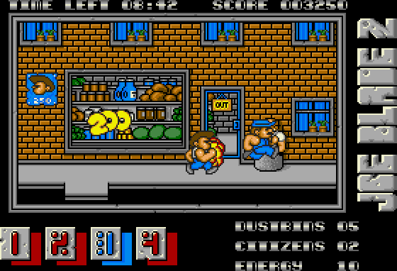 As Joe, you must move through the streets and kill these thugs, by kicking them in the head (they have body armour). As in the first game, the streets are flick-screen and have many doorways linking them. Rescuing civilians involves touching them before completing a sub-game within a minute.