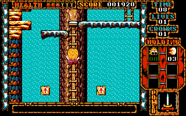 A platform game resembling Mario and Wonderboy quite strongly. Kid must rescue the woman he loves by crossing 6 worlds, each split into 4 levels. There are a range of baddies to beat, following pre-set attack patterns or just staying on the spot, to be killed using your sword.
